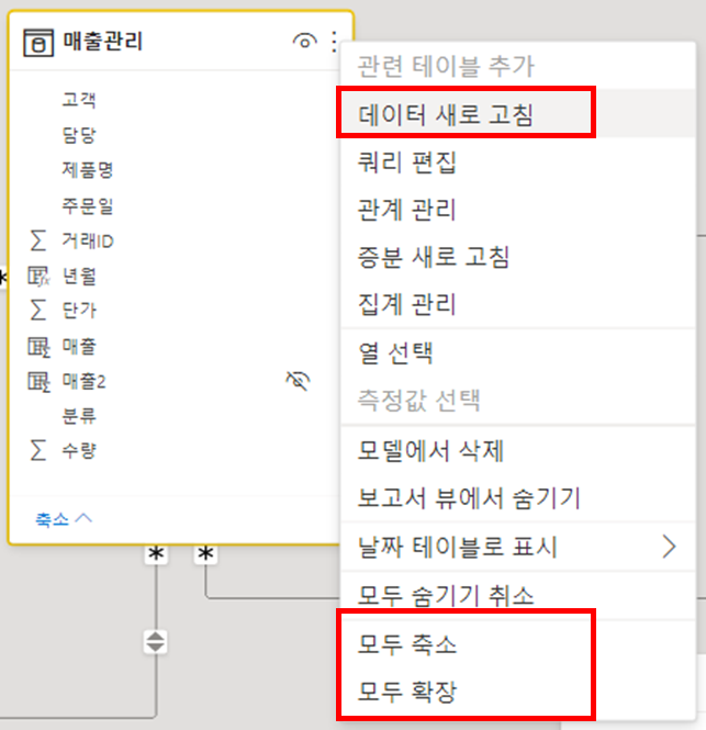 - 임계 값을 무시하려면 "모든 테이블 표시"를 누를 수 있지만 이로 인해 Power BI가 과도한 양의 메모리, CPU주기를 소비하고 상당히 느려질 수 있으므로 권장하지 않음