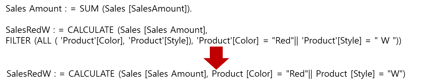 CALCULATE 함수로 작업 할 때 여러 필터를 지정할 때 추가 유연성을 추가