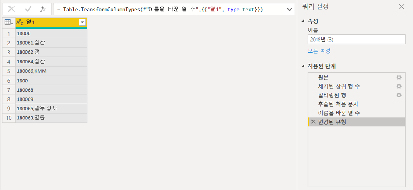 추출 할 샘플 값 집합을 제공하고 파워 쿼리에서이를 달성하기위한 변환을 유추