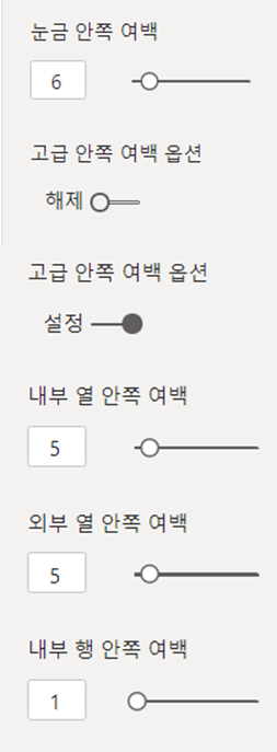 예를 들어, 슬라이더는 격자의 바깥 쪽 테두리가 켜져 있지 않으면 작은 다중 격자의 바깥 쪽 가장자리를 따라 패딩에 영향을주지 않음