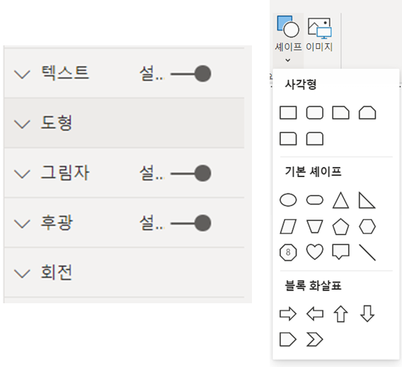보고서에 기존 셰이프가있는 경우 셰이프를 선택하고 셰이프 서식 창 에서 변환 을 클릭하여 새 셰이프 디자인으로 변환 가능