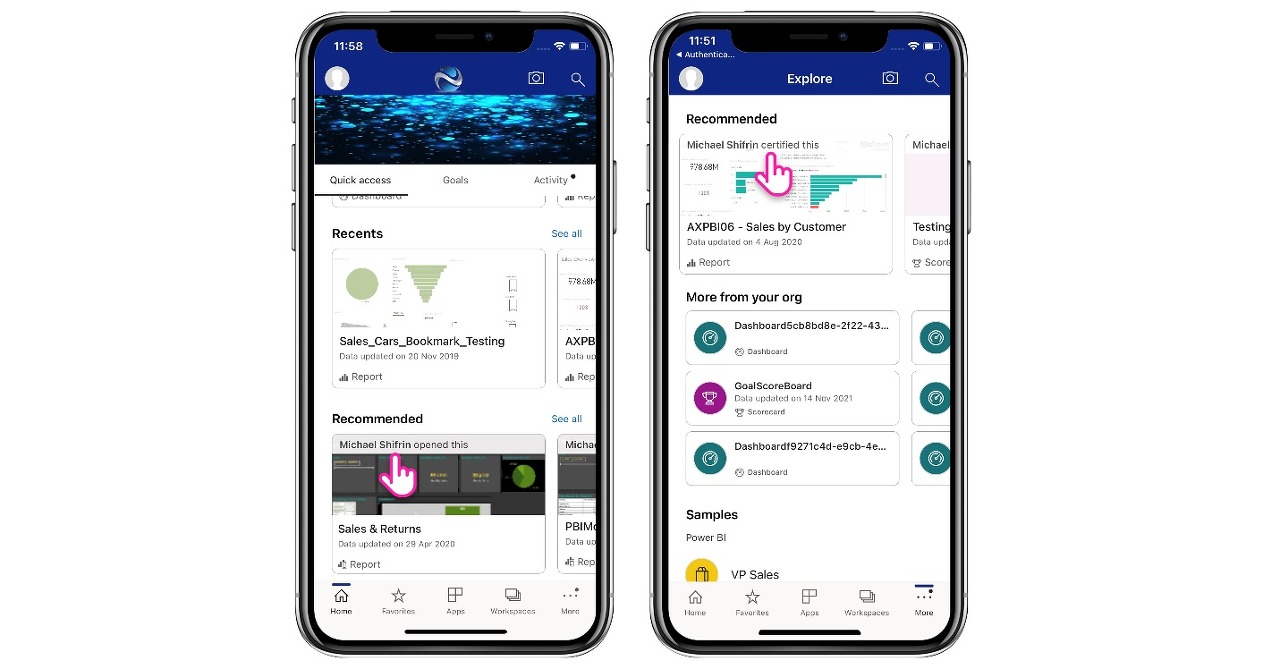 항목이 추천 콘텐츠로 선택된 이유를 이해하는 데 도움이 되도록 Power BI에서 추천하는 항목에 힌트를 추가했습니다. 항목을 열거나 인증하거나 게시한 사람을 볼 수 있으면 항목이 작업과 관련이 있는지 여부를 결정하는 데 도움이 될 수 있습니다.