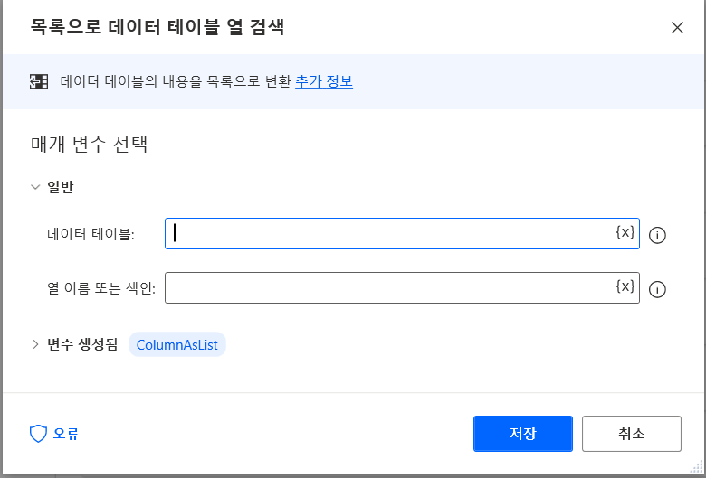 모든 데이터 테이블 변수에는 이제 해당 테이블의 열 이름을 보유하는 'ColumnHeadersRow'라는 데이터 행 유형의 새 속성이 있습니다. 이렇게 하면 열 머리글을 목록 형식으로 반환하는 기존 'Columns' 속성에 의존하는 대신 쉽고 간단한 방법으로 이러한 열 머리글을 행(예: Excel)에 작성할 수 있습니다.