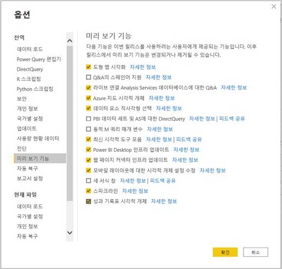 4. 지도 및 채워진 지도 시각적 개체를 활성화 또는 비활성화하는 새로운 설정