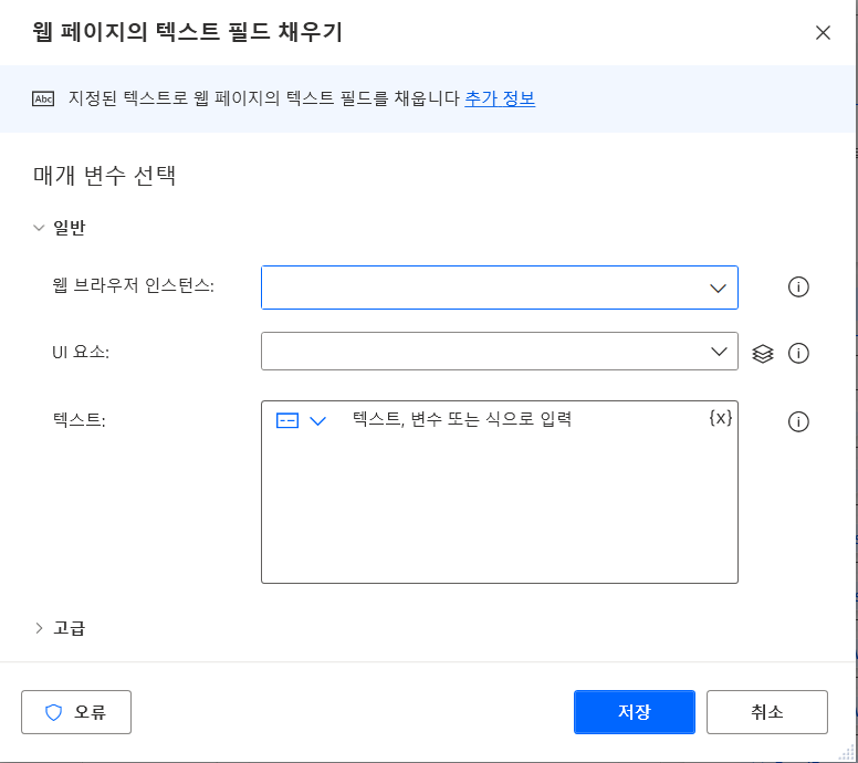 '웹 페이지의 텍스트 필드 채우기' 작업이 이제 '물리적 키 입력을 보내는 텍스트 채우기'라는 이름의 추가 매개변수로 추가되었습니다.