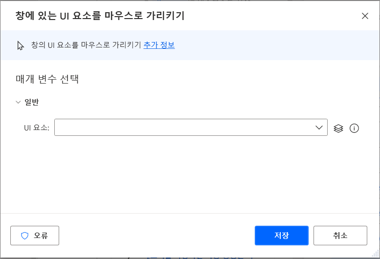 데스크톱용 Power Automate의 UI 자동화는 '창의 UI 요소를 마우스로 가리키기'라는 새로운 작업이 추가되었습니다.