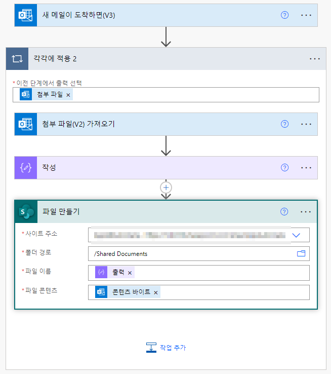 - 메일이 도착하면 첨부파일을 Sharepoint에 저장