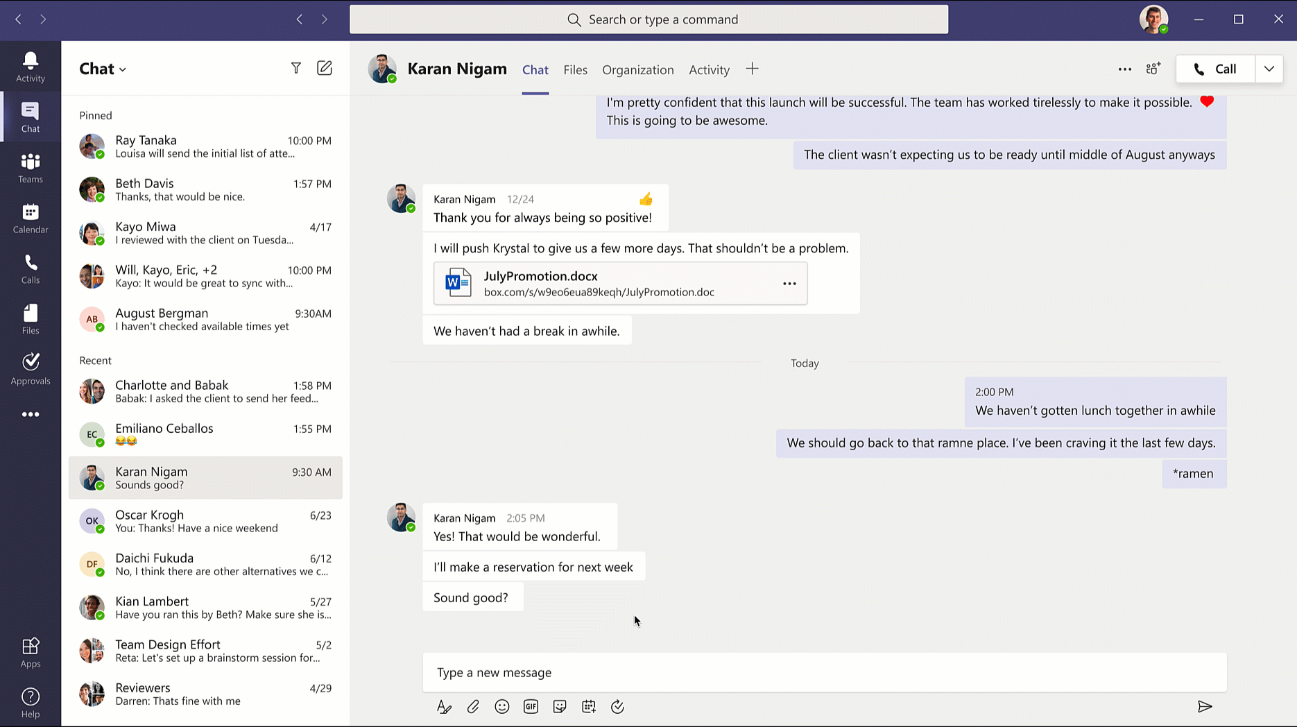 제출되면 승인자는 팀 내에서 알림을 받고 승인 카드를 사용하여 직접 채팅하거나 개인 앱 내에서 승인에 따라 조치를 취할 수 있습니다. 승인을 승인하거나 거부하기로 결정하기 전에 Teams 내에서 승인 권한의 세부 정보를 빠르게 검토할 수 있습니다.